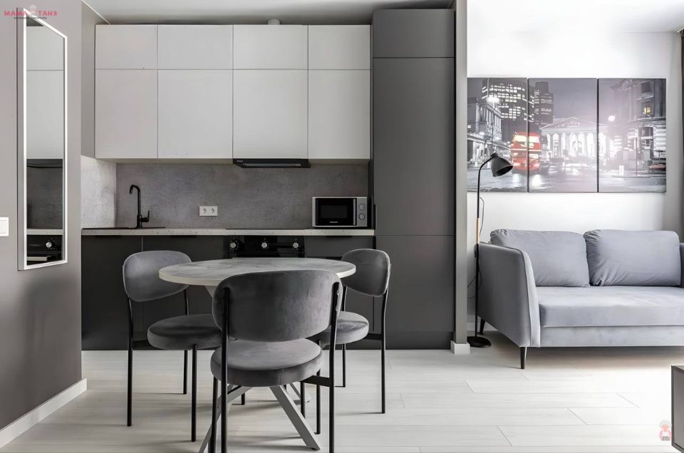 - Отличное сочетание итальянского стиля и современных мебельных решений. Актуальные матовые оттенки — это стильно и самодостаточно, при этом фасады отлично будут смотреться в комбинации с разными цветами и фактурами.