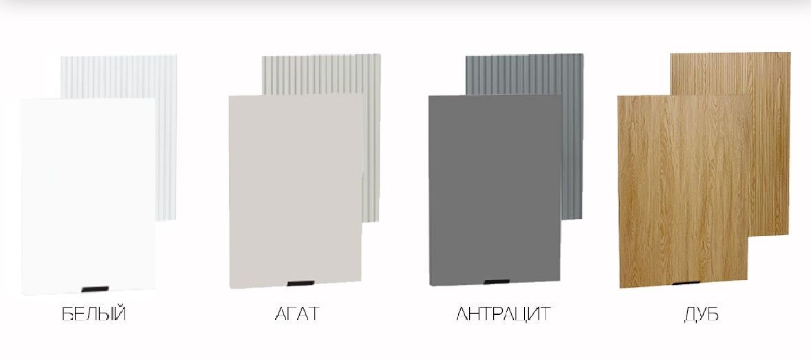 У каждой модели кухонного гарнитура своя палитра цветов, другой цвет выбрать не получится. Палитра не большая, но все наши комлектующие в наличии на складе под ваш размер стен.
