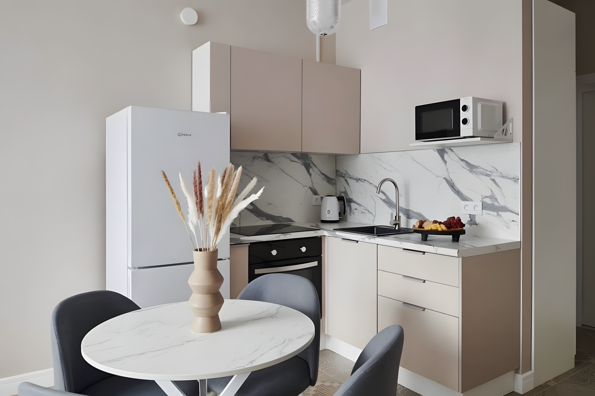 Кухонный гарнитур «Флэт» поможет вам создать столь необходимый в стиле лофт компромисс, сочетание в одном пространстве старого и нового.