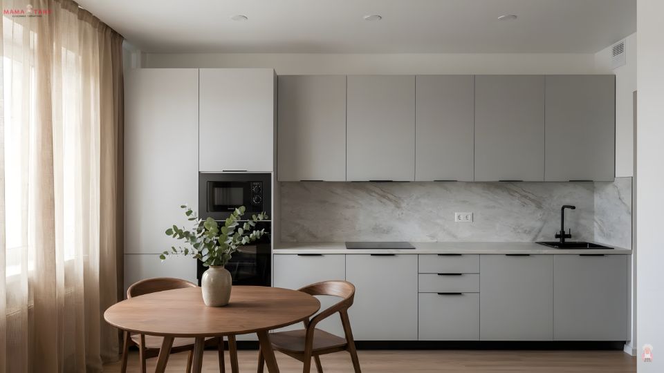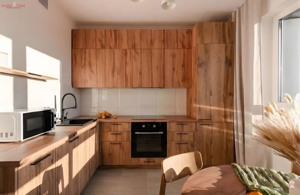 Наши модульные кухни имеют фиксированные размеры с шагом 5 см. На складе держим более 80% комплектующих в наличии. Мы персонально с вами разработаем макет кухни под ваш размер, проработаем его с вами и привезем в удобный для вас день