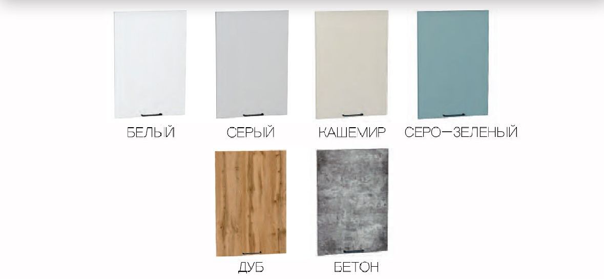 У каждой модели кухонного гарнитура своя палитра цветов, другой цвет выбрать не получится. Палитра не большая, но все наши комлектующие в наличии на складе под ваш размер стен.