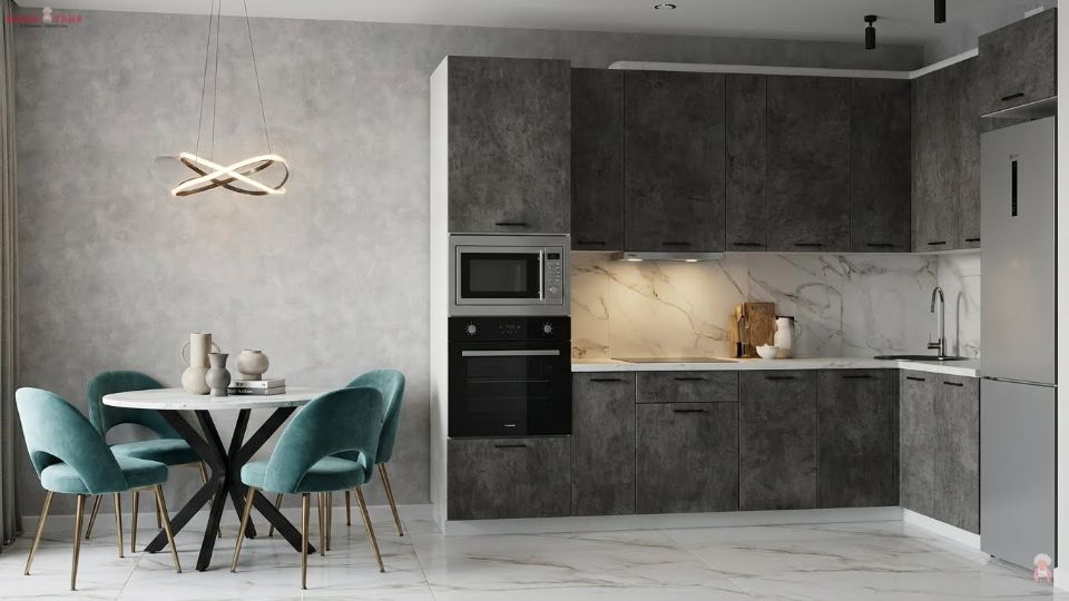 - Эта кухня качественная и геометрически простая. Поможет вам грамотно организовать пространство в едином индустриальном стиле. Декоры фасадов Wotan Oak и Temple Stone — это беспроигрышный вариант сочетания материалов, который останется востребованным еще много лет