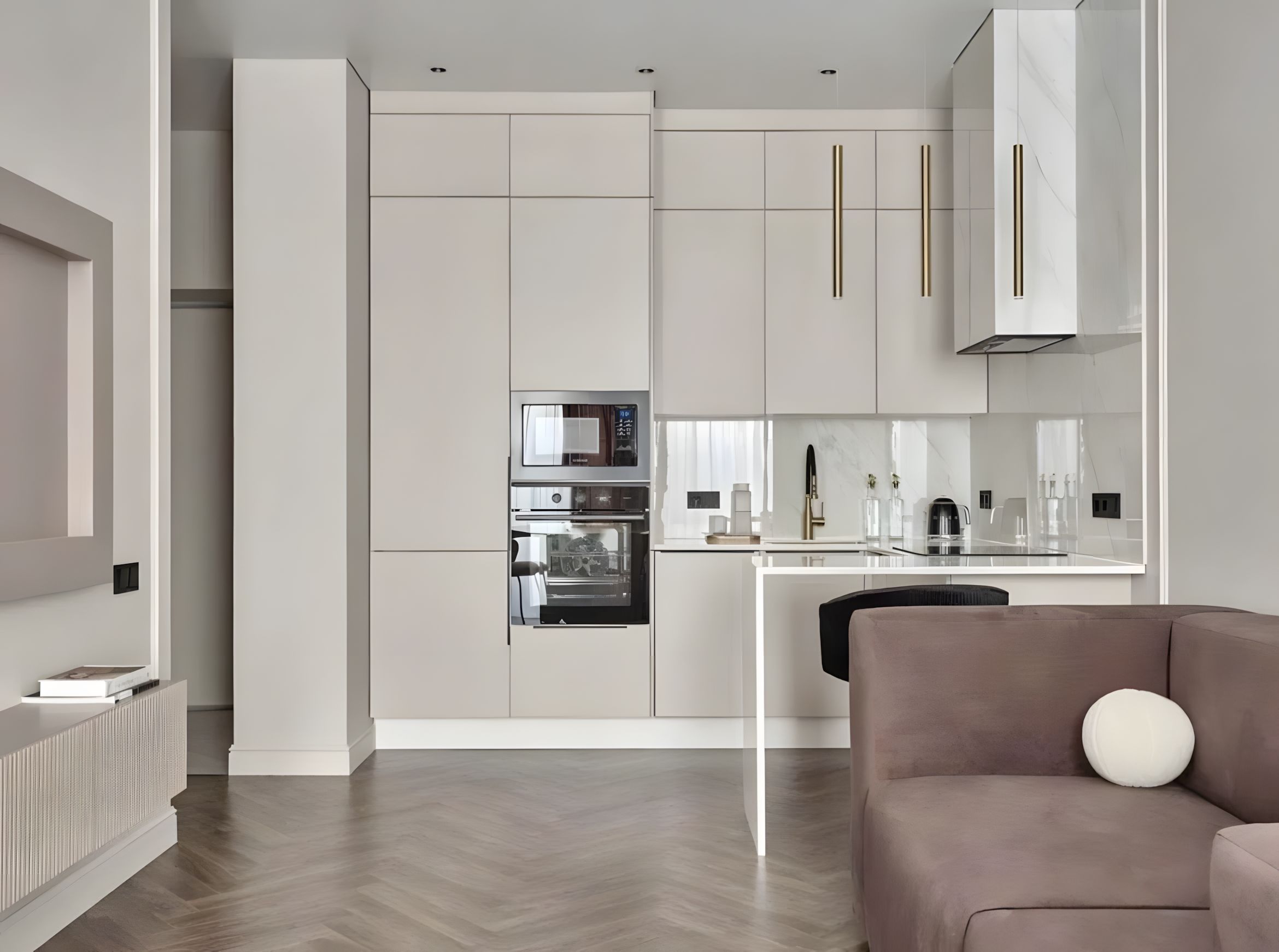 Что не входит в п.м? Бытовая техника, специальные модули (бутылочницы, выдвижные системы, дорогие и дополнительные материалы как стеклянные фасады, столешницы, цоколь, дорогая фурнитура с доводчиками и т.д)