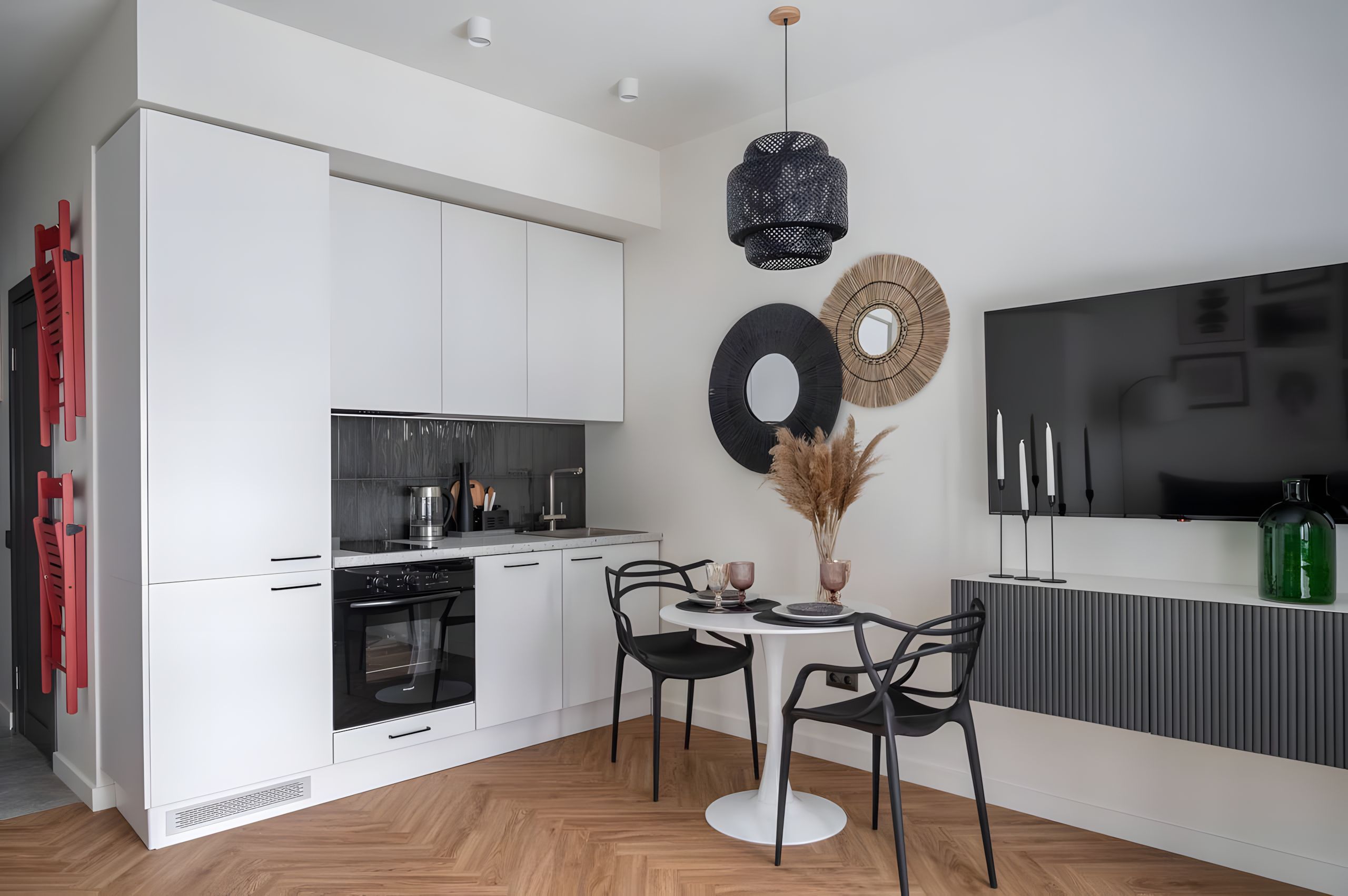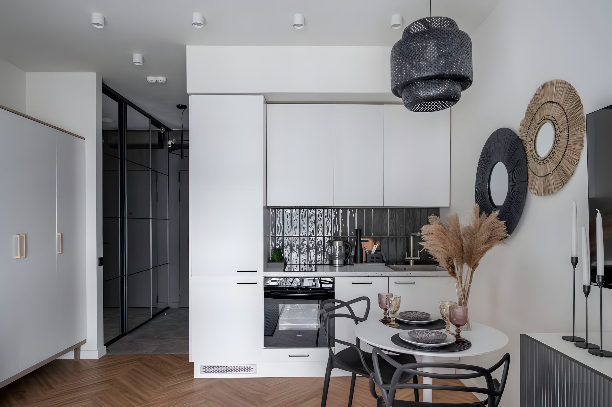 Рекомендуем укомплектовать фасады торцевыми ручками мод. Т-2. Это подчеркнет безупречный стиль вашей современной кухни. Они эргономичны и удобны в использовании. Располагаются так, чтобы не отвлекать на себя внимание от глянцевых фасадов, которые зрительно увеличивают пространство кухонного помещения. Смотрится очень эффектно.