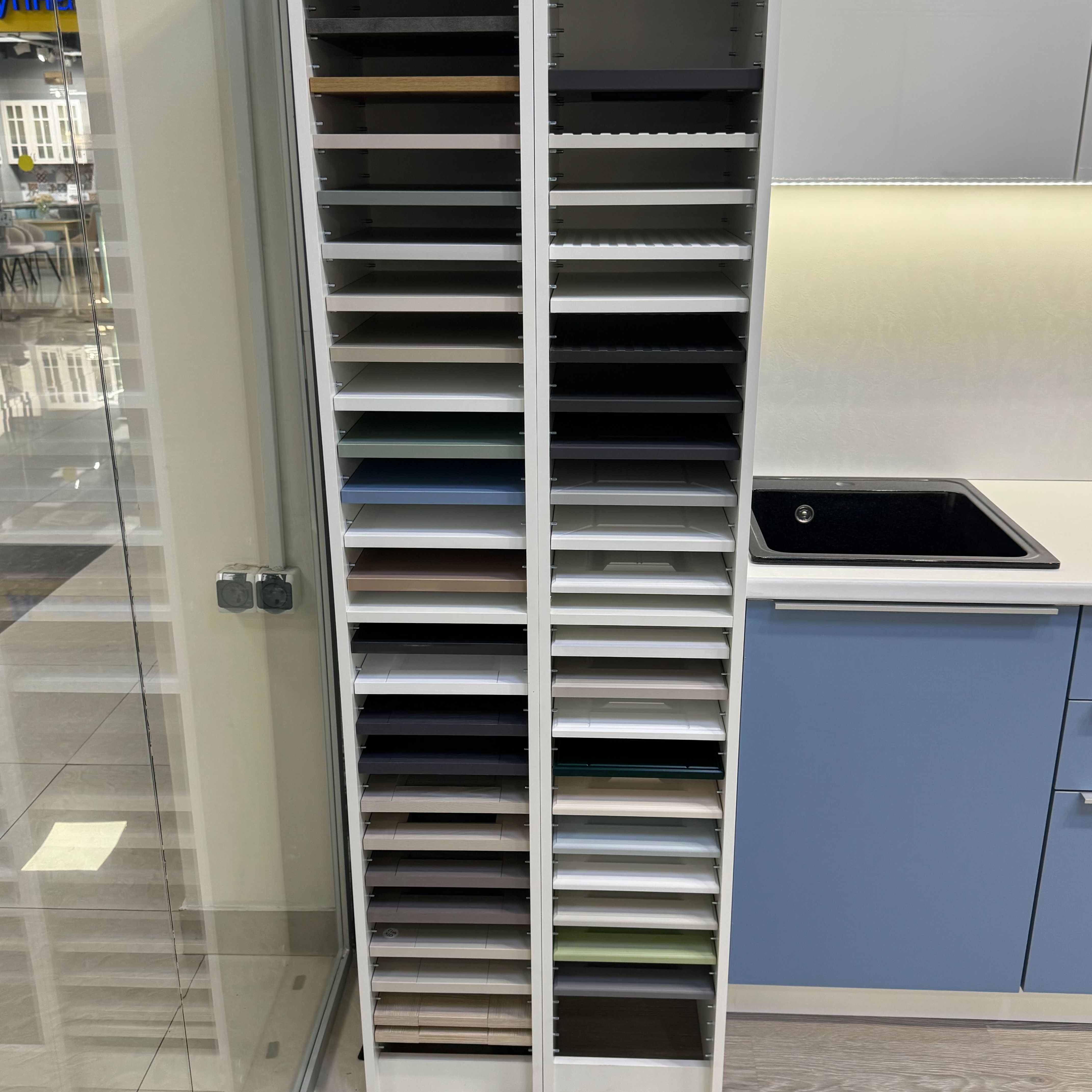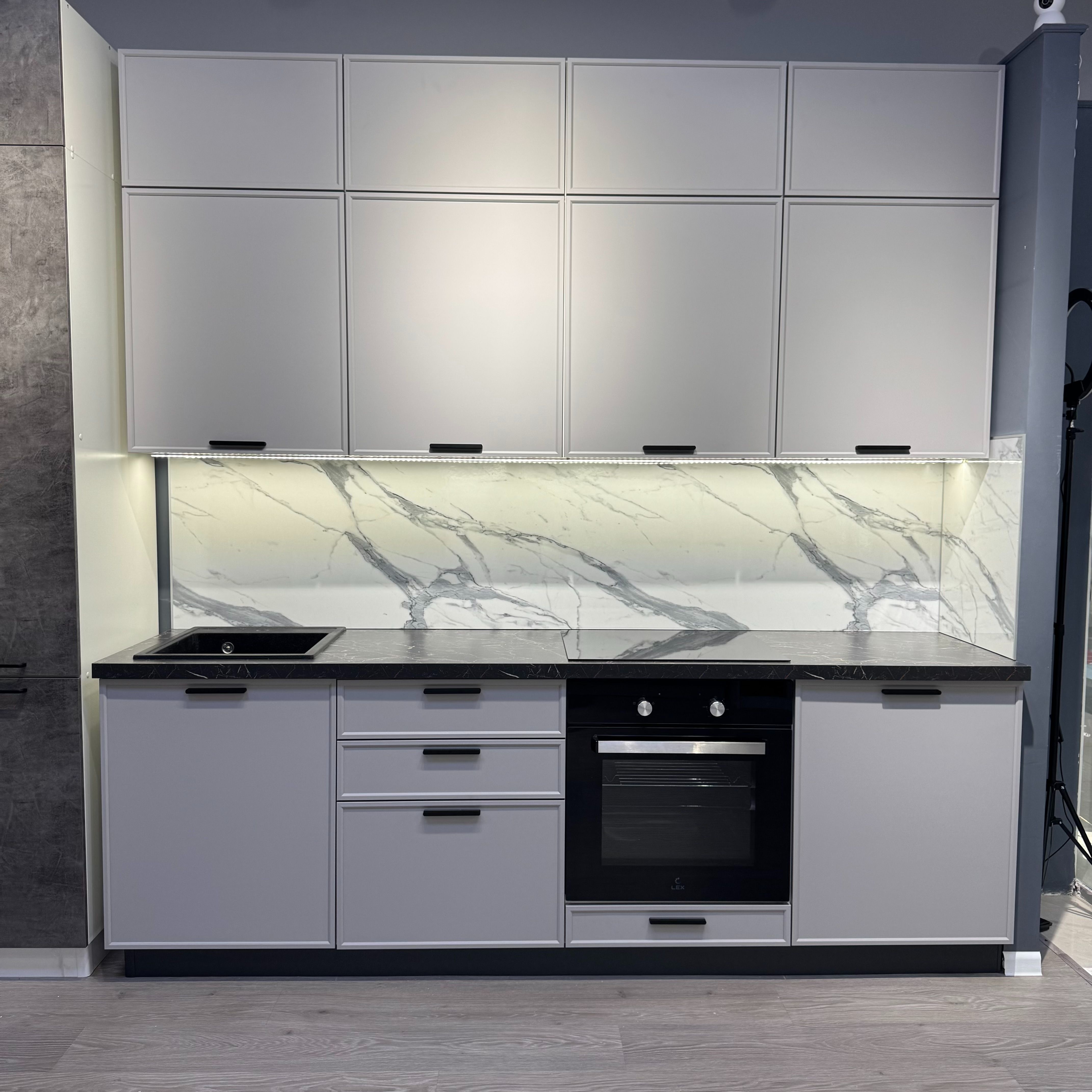 Все кухонные гарнитуры(цвета и фасады) в наличии и доступны под любой размер. Доставка в короткие сроки. В среднем от начала работы (построение макета) до установки занимает 2-3 дня.