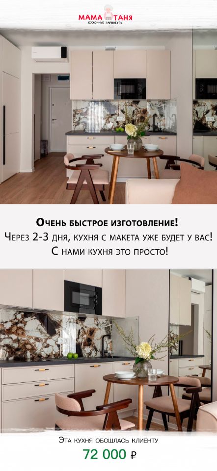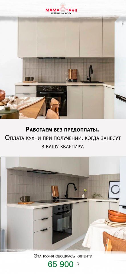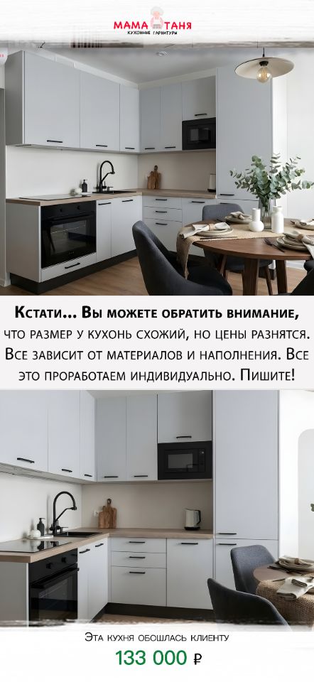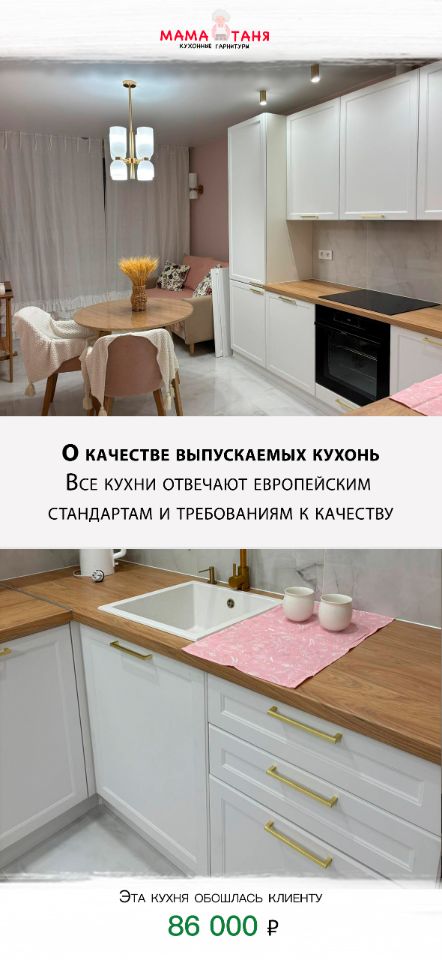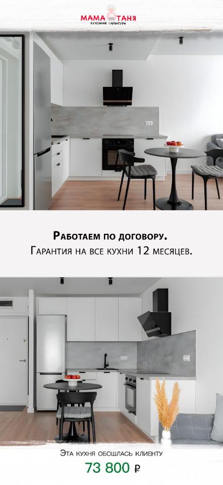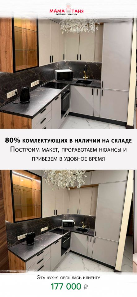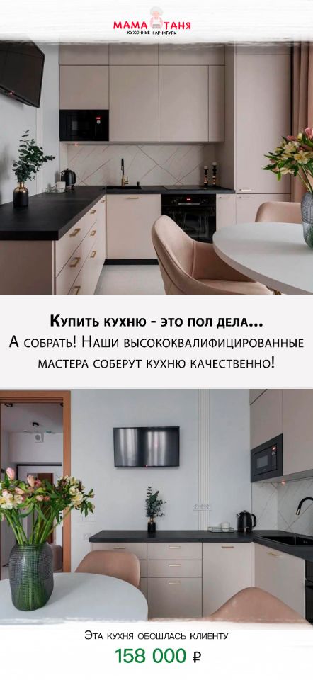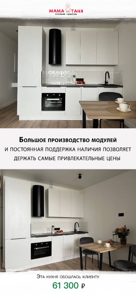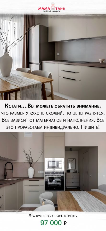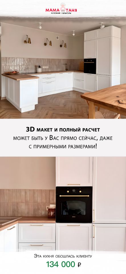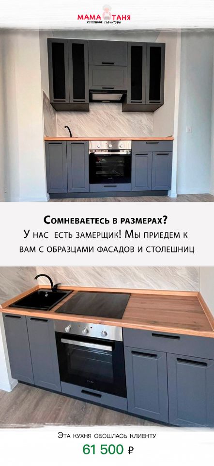Предлагаем к просмотру небольшую презентацию нашей компании Мама Таня, расскажем о наших возможностях и плюсах, а так же вы сразу посмотрите готовые проекты с ценами для наших клиентов, что бы приценится к кухонькам!