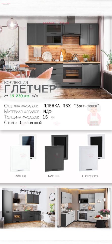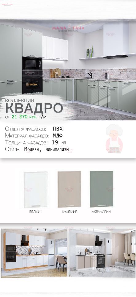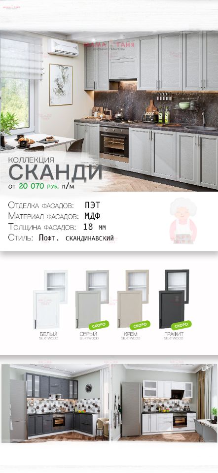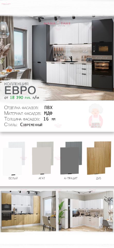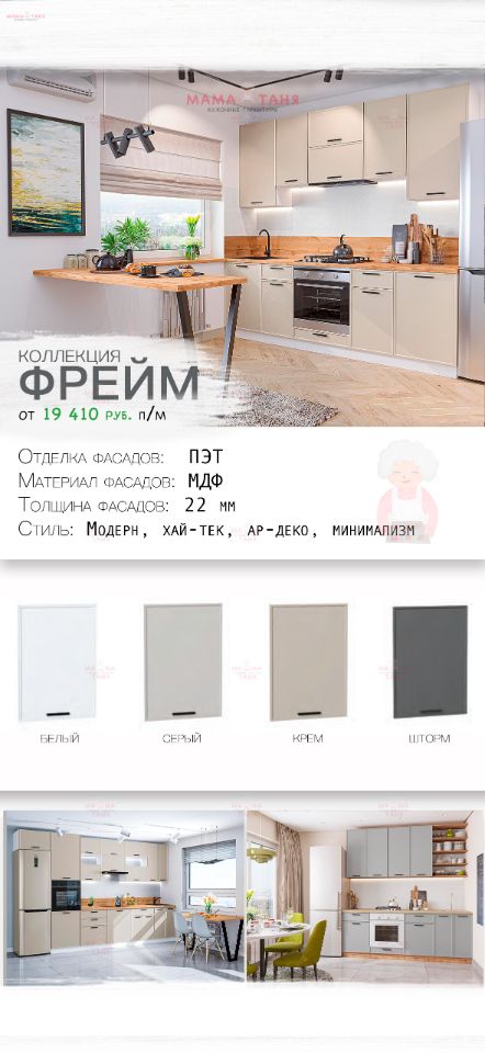 Большинство фасадов и комплектующих уже в наличии на складе. Кухню можем привезти уже завтра под ваши размеры